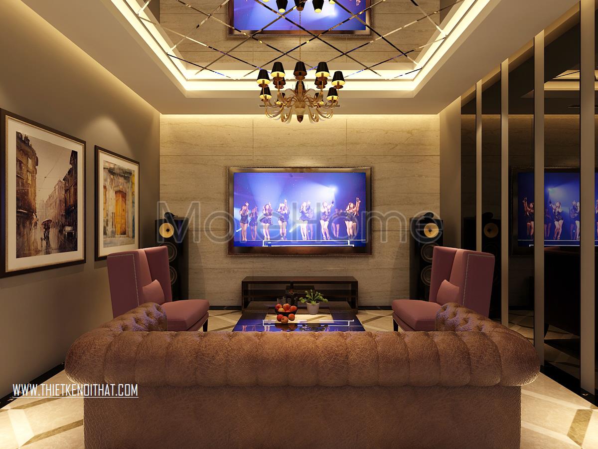 Thiết kế nội thất phòng khách hiện đại sử dụng tone màu nâu trầm làm chủ yếu mang lại cảm giác ấm áp và gần gũi cho gia chủ. Bộ sofa to và rộng được khéo léo sử dụng tạo cảm giác chắc chắn và an toàn cho gia chủ.