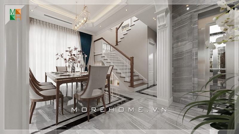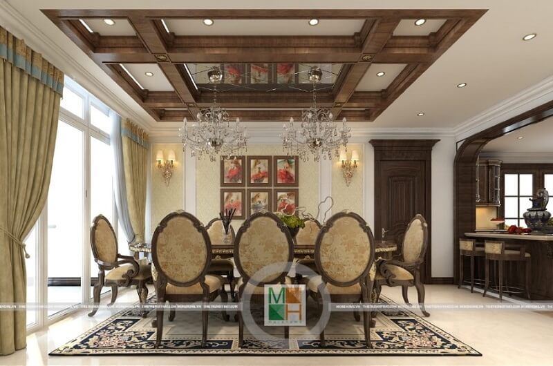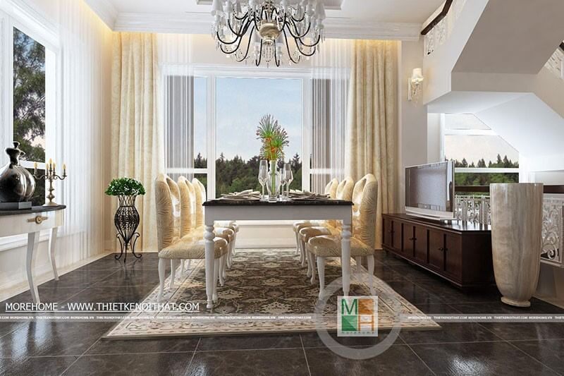 Trang trí nội thất phòng ăn biệt thự Vinhomes The Harmony cao cấp với bàn ăn đẹp tân cổ điển