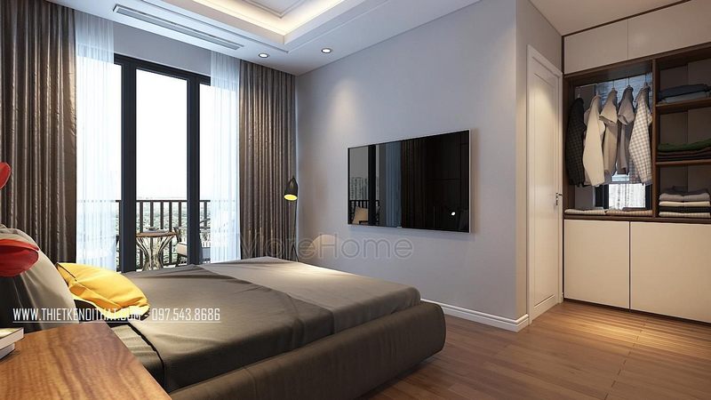 Không gian nội thất trong phòng ngủ của căn hộ nhỏ được bố trí một cách hợp lý, đảm bảo cung cấp cho người dùng một không gian nghỉ ngơi đẳng cấp và thoải mái nhất.