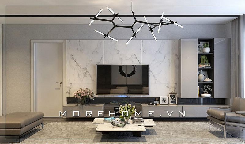 Kệ decor và kệ tivi treo tường bằng gỗ công nghiệp giúp phòng khách của bạn trở nên đặc biệt và ấm cúng hơn.