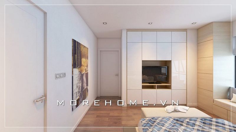 Tủ quần áo âm tường được thiết kế theo phong cách hiện đại, trẻ trung và được làm từ chất liệu gỗ công nghiệp, giúp tạo nên sự đồng nhất cho cả căn phòng mà chủ nhân đã lựa chọn.